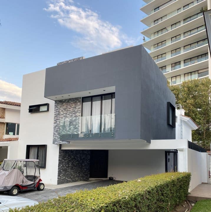 Trabajo de pintura en alturas, mediante sistema de cuerda y línea de vida.