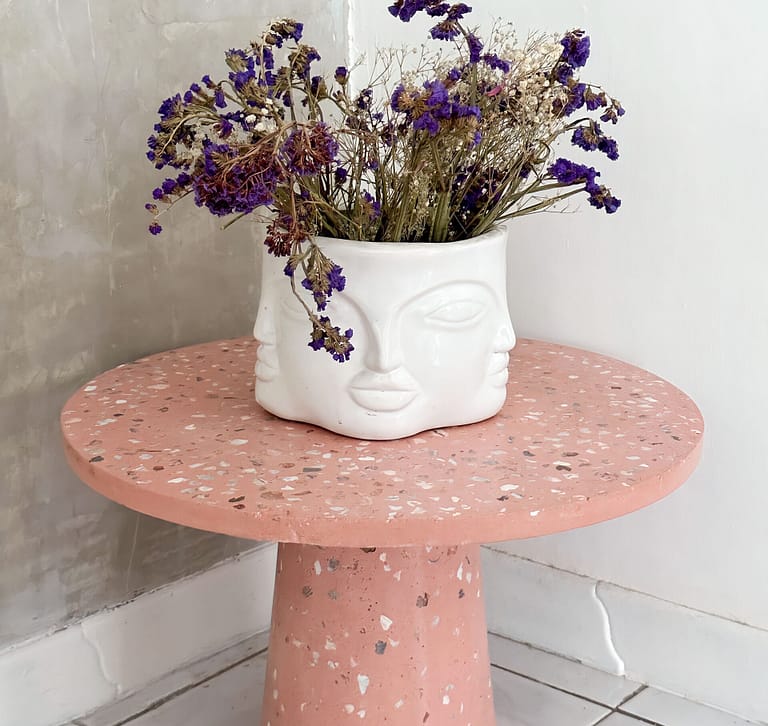 Mesa de terrazo color rosa